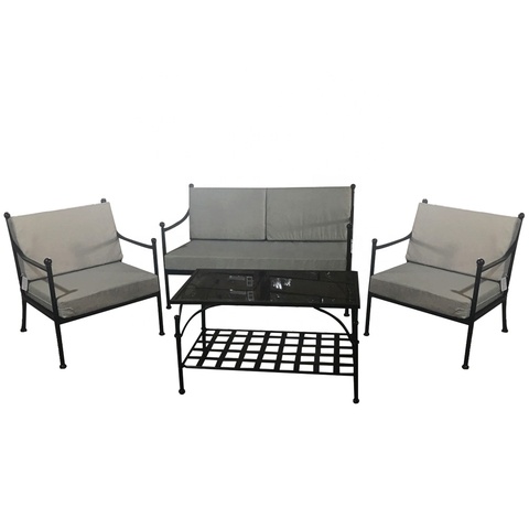 Moderno 4 piezas de muebles de jardín al aire libre MARCO DE Metal de hierro completo conversación KD sofá conjunto con mesa de hierro