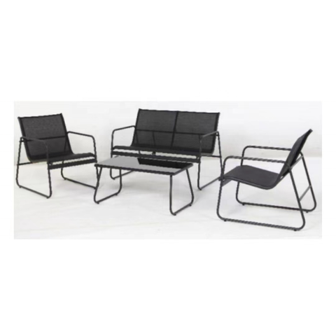 Barato patio al aire libre tela de malla de textileno 4 piezas conversación marco de acero KD sofá conjunto con mesa negra