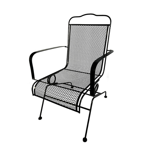 Silla de metal con reposabrazos de malla de acero para jardín, muebles de exterior, uso en patio, mecedora de silla como un niño